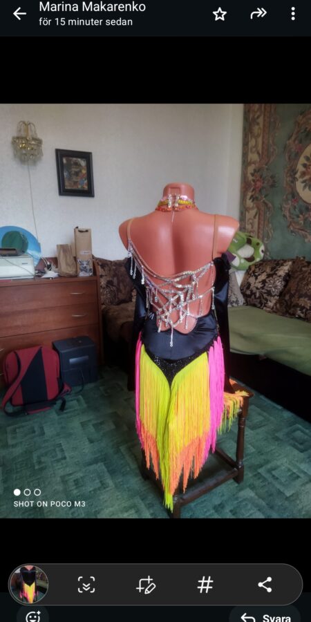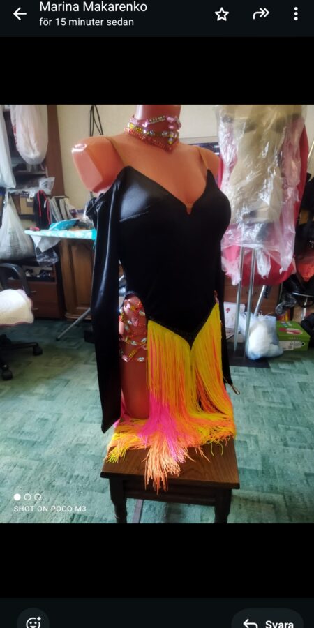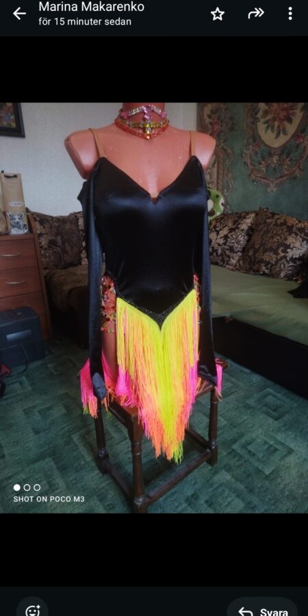 Beautiful dress with option to change skirt colours. Colourful or black. Includes matching bracelets and necklace.