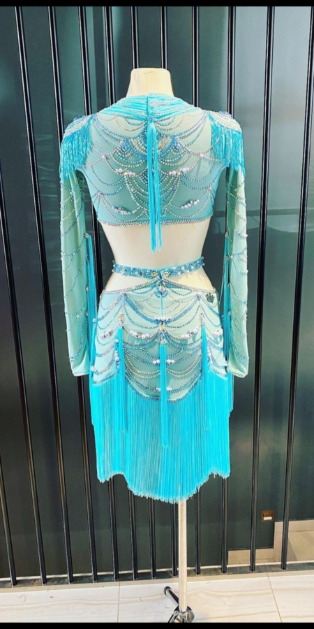 Beautiful light blue DLK Dress for sale, only worn twice! Fits size XS-S, full of Swarovski Rhinestones. Worldwide shipping!