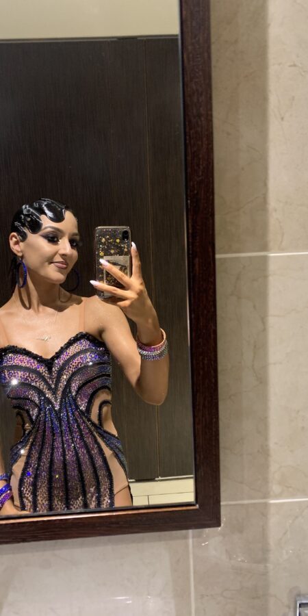 Fully stoned dress with matching earrings and bracelets. Made in Japan by KayDesign.
