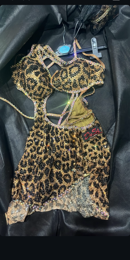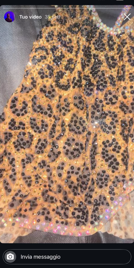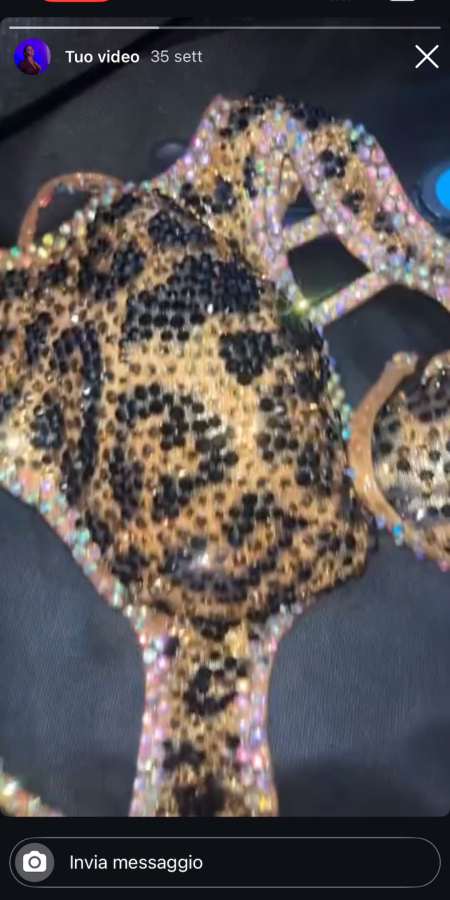 this dress is full of stones and strass. also it has accessories ( earrings and bracelets). very very visible on the floor because of the quantity of strass