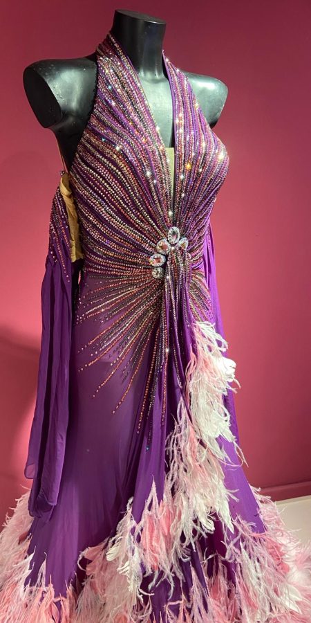Purple feathered Iban Salgado Ballroom Dress