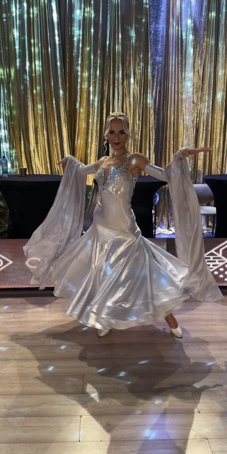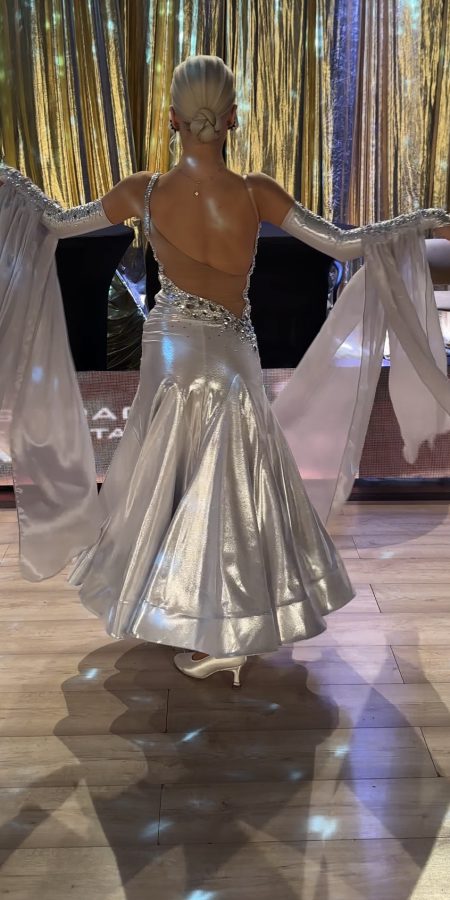 Hello, I’m selling my brand new silver ballroom dress used at 2 competitions.