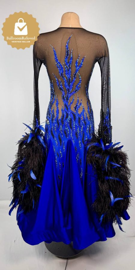 Colour: Royal Blue Satin skirt, heavily stoned royal blue bodice with black mesh arms & back for full coverage effect