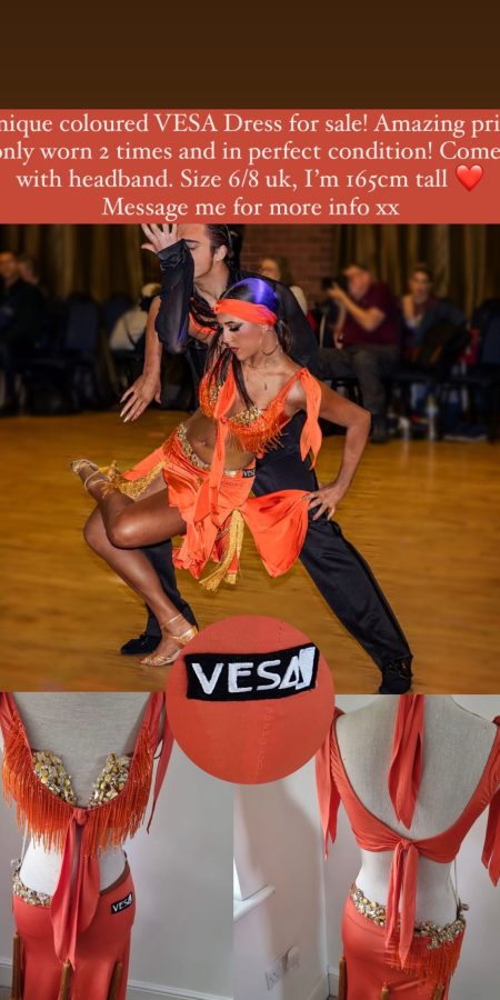 Bright Orange VESA dress for sale, worn only 2 times and is in perfect condition. I have stoped dancing and it needs a new loving owner ❤️